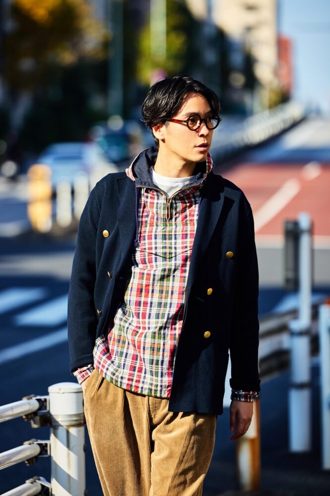 アイビースタイルでよく用いられるアイテムを頭に描きながら、赤青緑黄を中心としたマドラス生地をチョイス。さらにBDシャツの上からでも羽織れて、紺ブレのインナーとしても着用できる絶妙なサイジングで設計することで、春も秋冬も着用できるように配慮した。