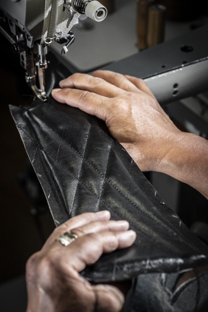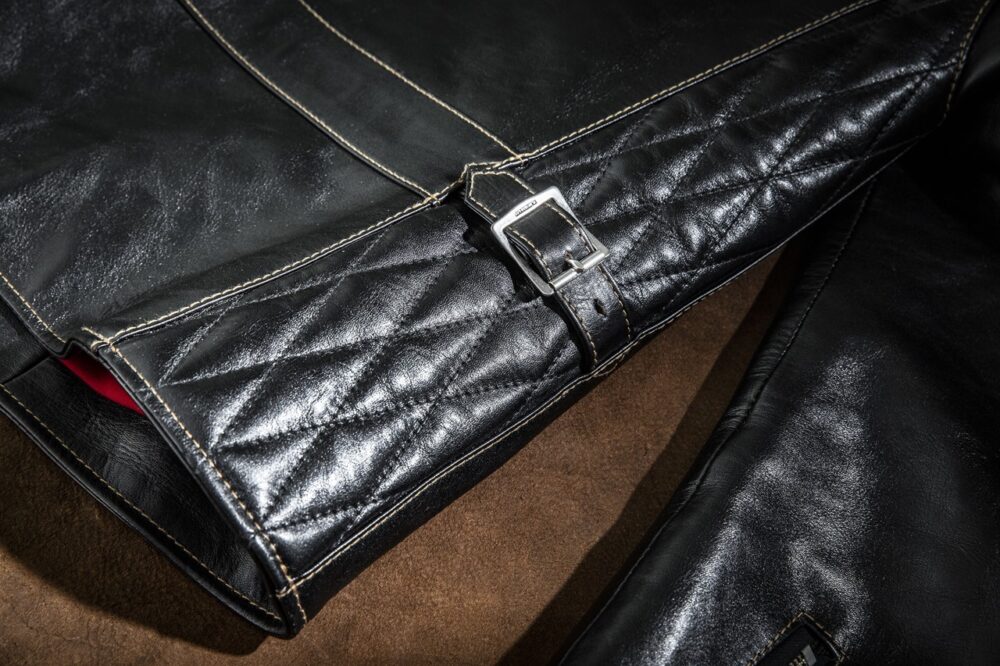 アメリカのライダースジャケットを象徴するダイヤモンドパターンのキルティングパデッドは中央部から外側へとミシンを走らせることで、より美しい仕上がりに。