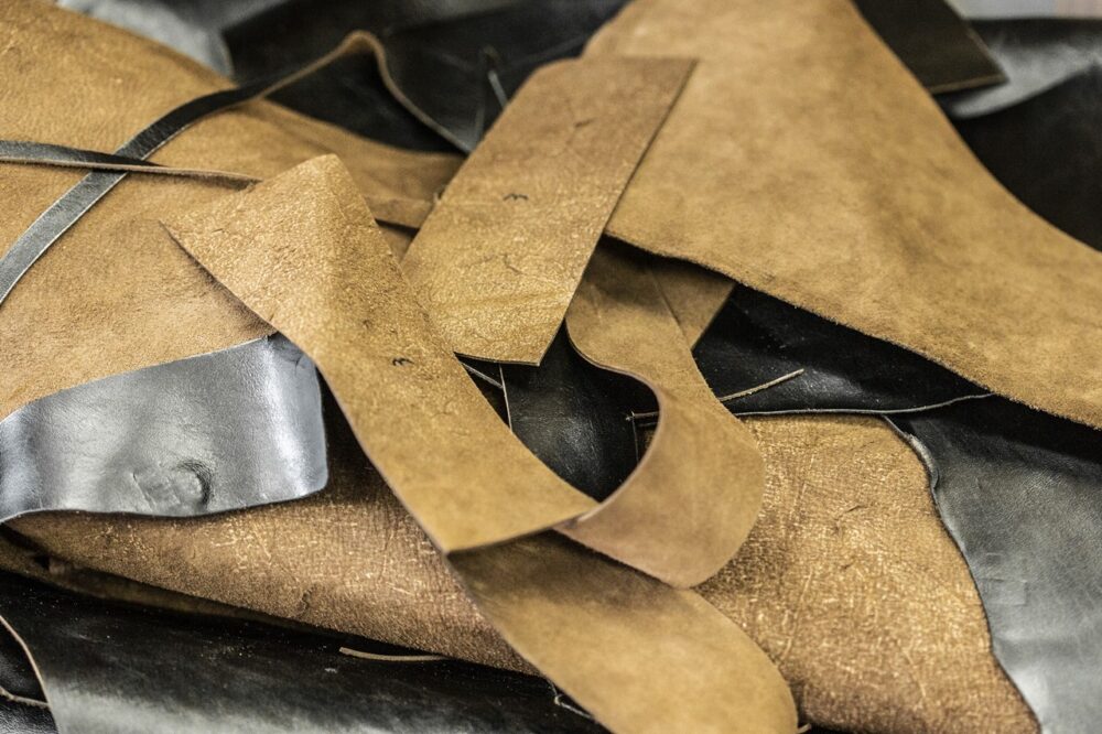 レザーの状態を1枚ずつチェックし、製品となった時にシボが目立たないよう配慮しながら、裁断を行っていく。