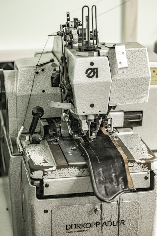 工業用ミシンをリードするドイツの名門デュルコップ・アドラーのミシンなど、レザージャケットに必要な設備を増強している。