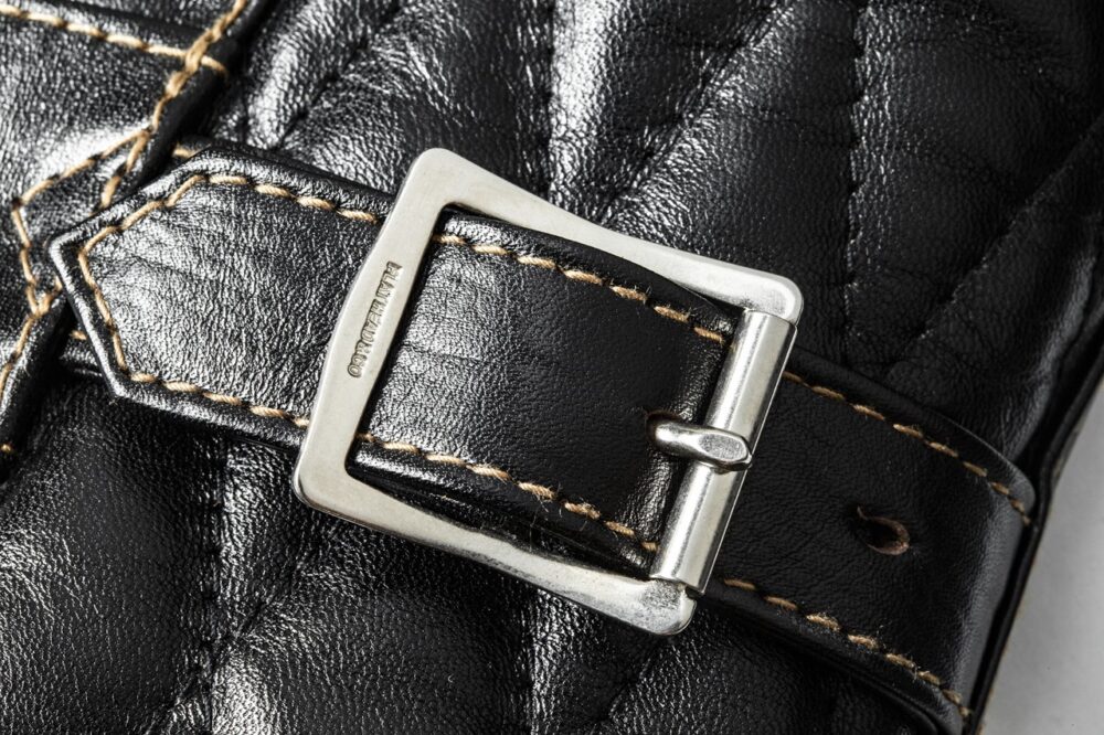 このモデルのスペシャルな意匠が、サイドアジャスターの付いたパネル部分にダイヤモンドパターンのパデッドを使っていること。このデザインはヴィンテージにはない。