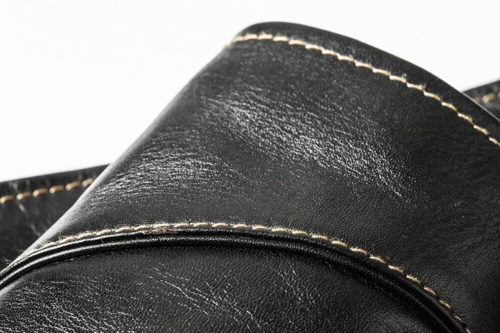 セミアニリンで仕上げた茶芯のオリジナルレザーがエイジングした時にステッチと調和し、さらに魅力的な表情へと変わっていく。