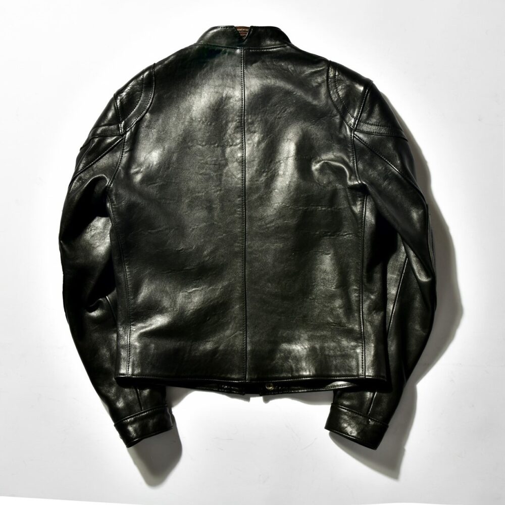 MONZAの派生モデルとして登場したSUPER MONZAはダブルブレストのスタンドカラーを備える、レーシーなテイストが魅力。やや長めの着丈やバックのシャープなパデッドのシルエットが特徴的だ。クラシカルな雰囲気が好みだけど、でも見慣れたライダースじゃ満足できない、そんな人にオススメの1着。20万200円