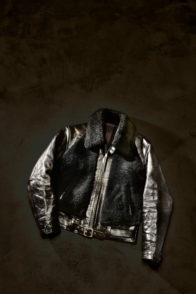 1930年代に見られたグリズリージャケットを今に伝えるビルトバックの代表作。フルベジタブルタンニン鞣し・ラッカー仕上げの馬革を使用し、特有の光沢感を湛えている。経年でダイナミックな皺が刻まれ、光沢感と相まって独特の凹凸感を堪能できるのも特徴的。漆黒のシープムートンとのコントラストが美しい逸品。22万円