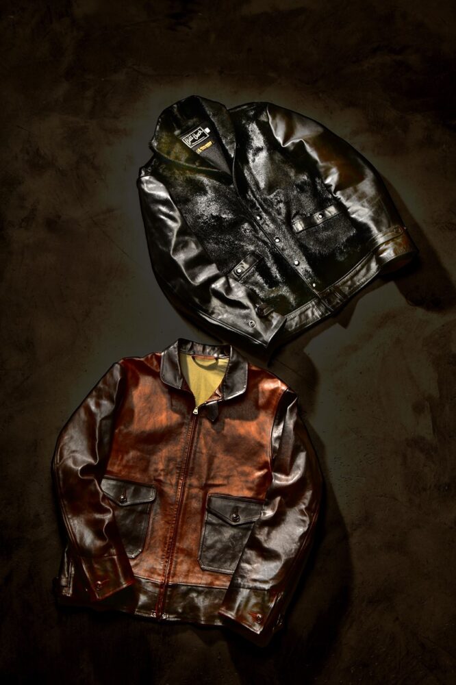 (上)Lot.625 Hair on Horsehide king Shawl Jacket、(下)Lot.762 A-1 Zip Jacket