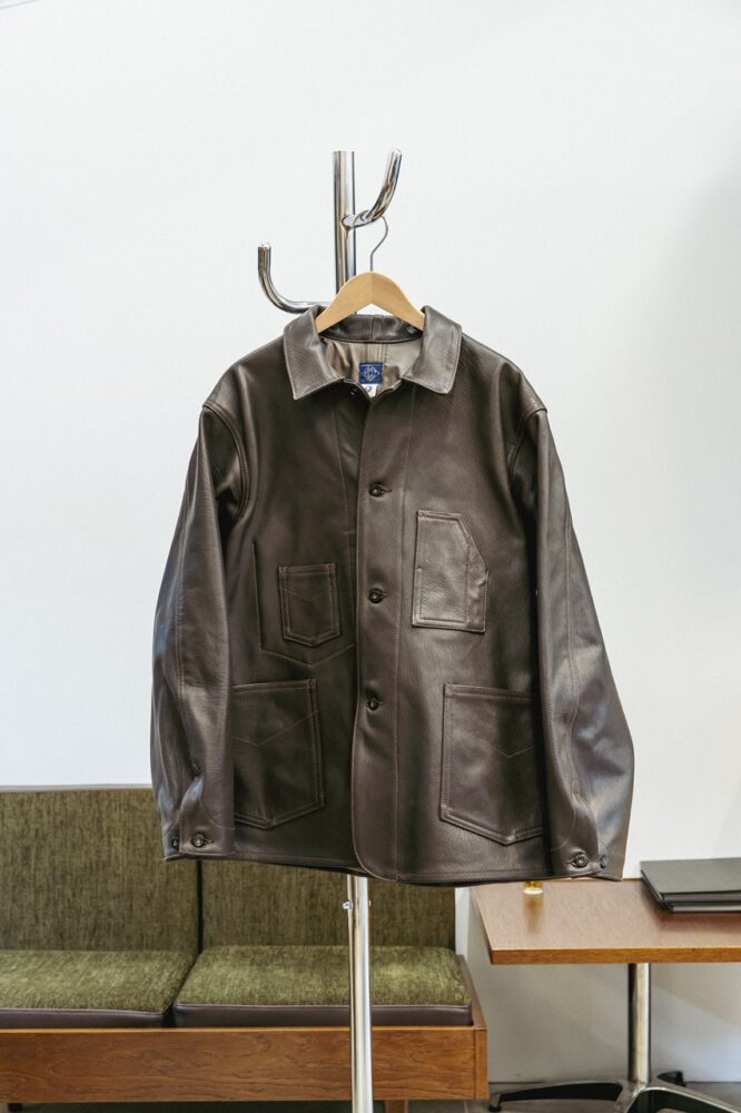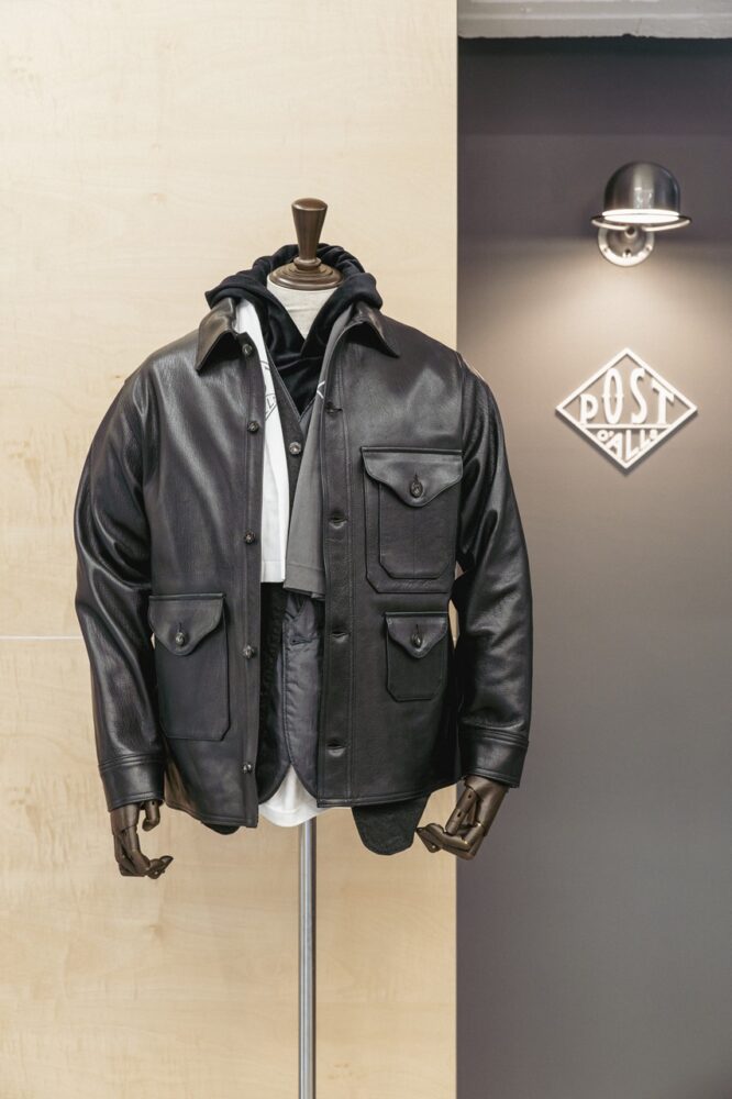 レザージャケットと聞いて、まず浮かぶのがライダースか、ミリタリージャケットで、少し捻るとスポーツジャケットあたりだろう。今回の特集にあたり、リサーチを行っていたところ、飛び込んできたのが、中目黒に新店舗をオープンしたばかりのポストオーバーオールのレザークルーザージャケットだ。