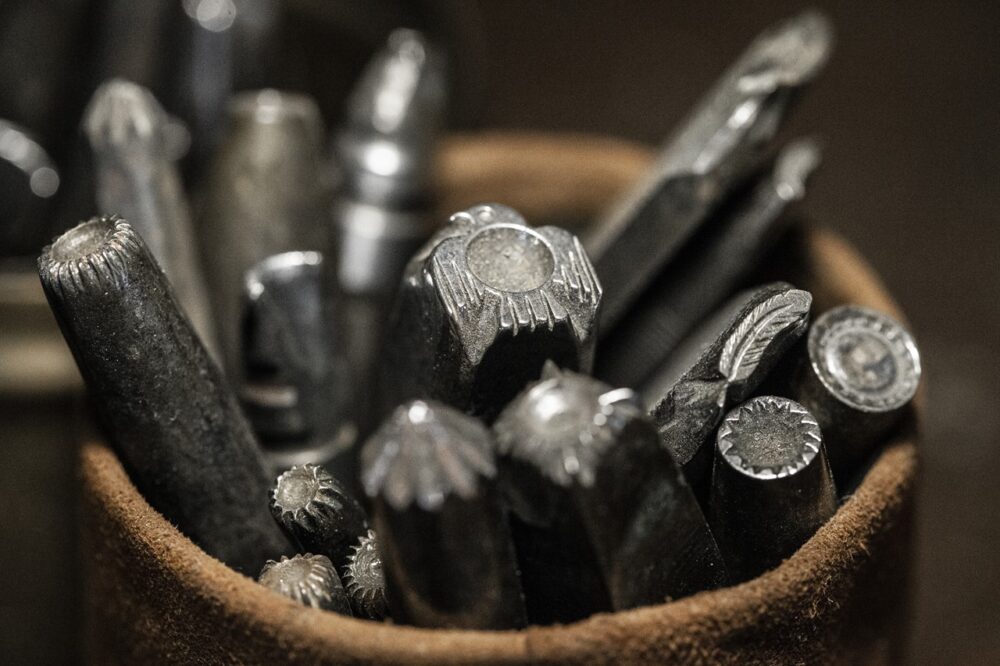 先端に様々な模様が入ったタガネは、すべてオリジナルで制作したもの。ネイティブアメリカンのシルバースミスも駆使する伝統的な製法である。