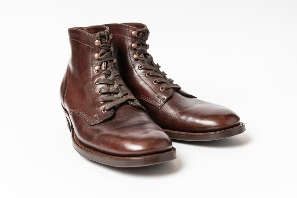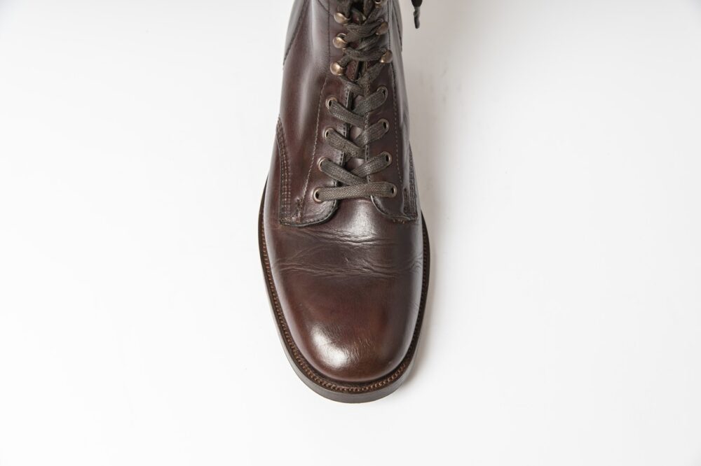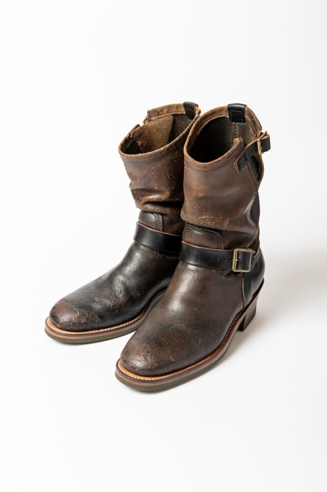 これはウルヴァリンの名作1000マイルブーツをクリンチのオリジナルであるナローラストでリラストしたもの。海外からのオーダーで、本来のラストが足に合わなかったそう。こちらはオールソール交換時しかできないのでご注意を。5万1700円