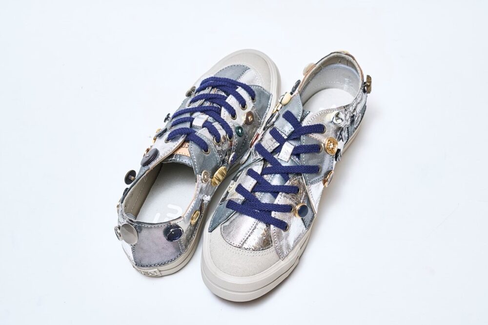 作品名はアンティークボタンのイタリア語。ヨーロッパのアンティークボタンをランダムに配置。ベーススニーカーはRFWのSANDWICH-LO。26.5㎝。2万8600円