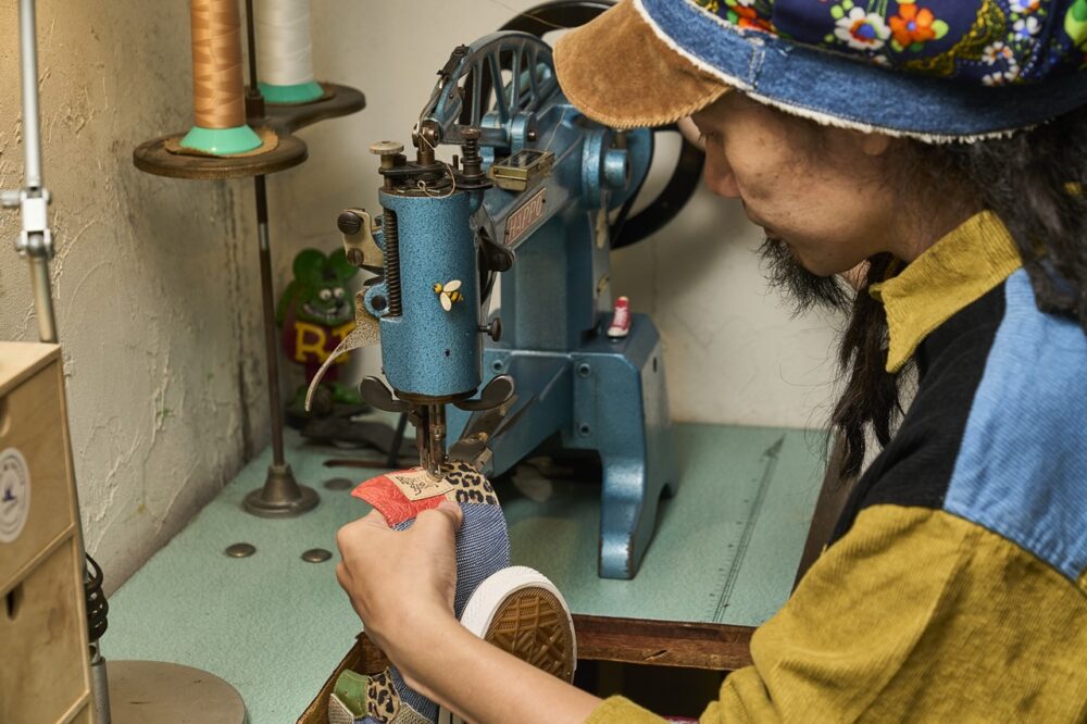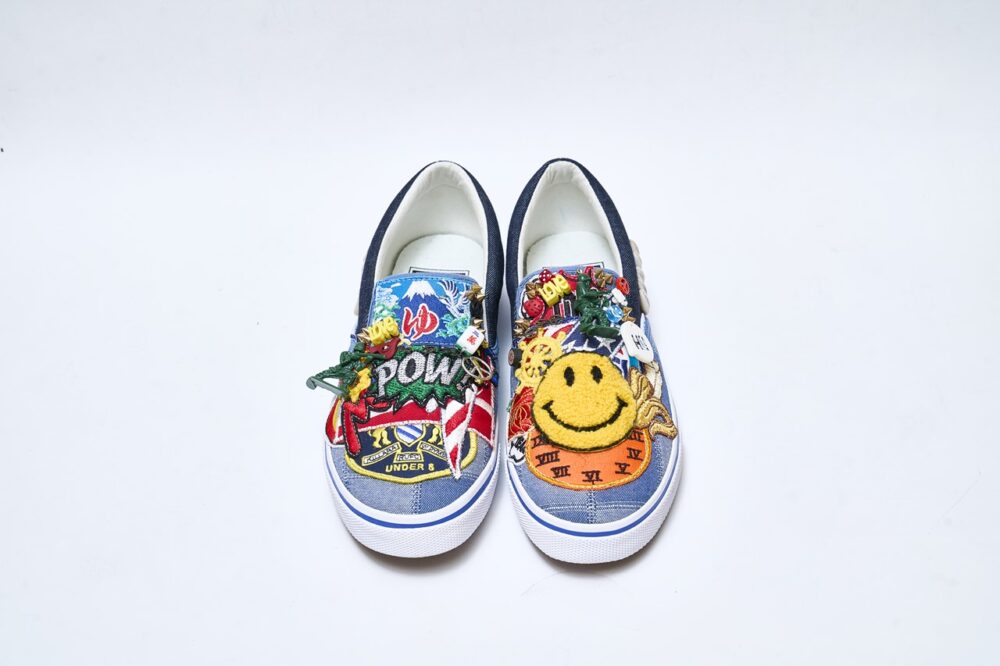 ベースとして使用するスニーカーはヴィジョンストリートウェア、RFW、BAKESOLEのいずれかを使用。ワッペンやボタンは基本的にヴィンテージの物を中心にセレクトされている。