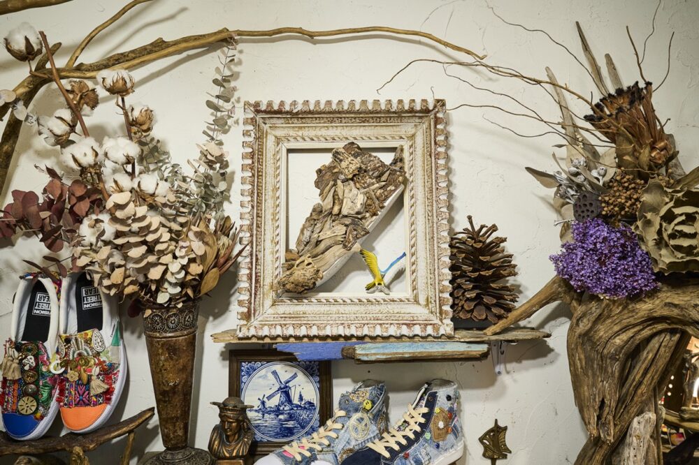 まるでアートピースのようなリメイクスニーカー。履くか、それとも飾るか? そこを悩むのも楽しみのひとつだろう。