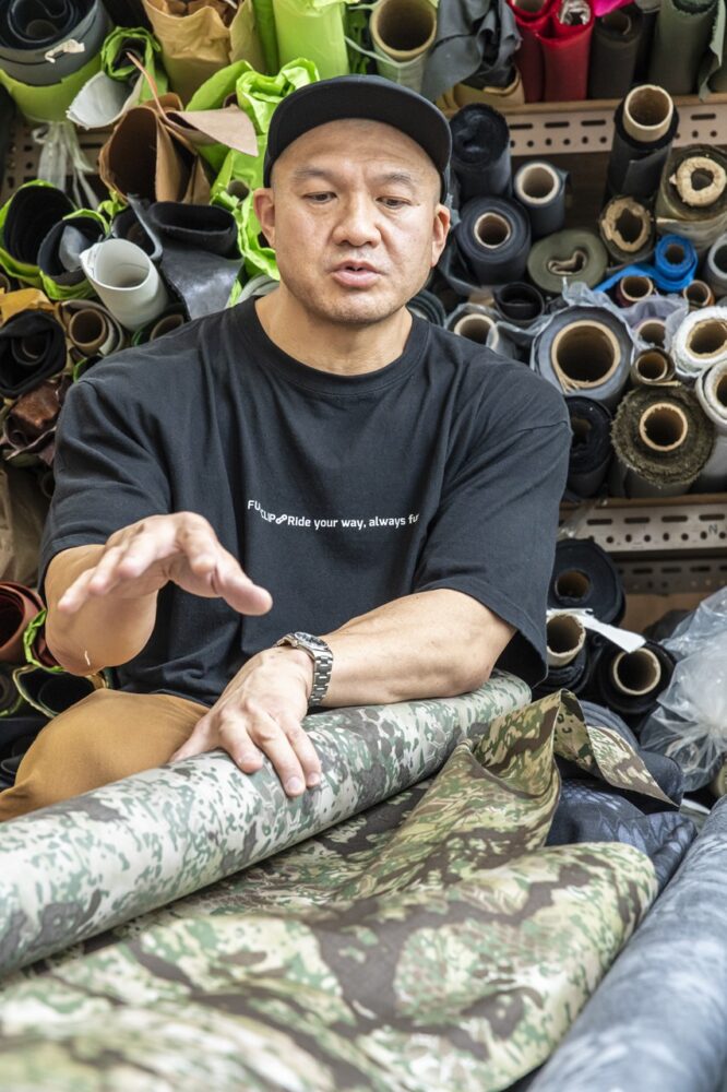 日本では出回っていないミルスペックを中心とした高機能なファブリックと、その性能を最大限に引き出す高い技術とデザイン性を両立したバッグブランドのフルクリップ。マネージャーを務める平垣さんはキャンプや釣り、自転車などの生粋の趣味人であり、そこで必要となる道具を自身でリメイクしてしまう達人。その豊かな発想はブランドにもよく表れている