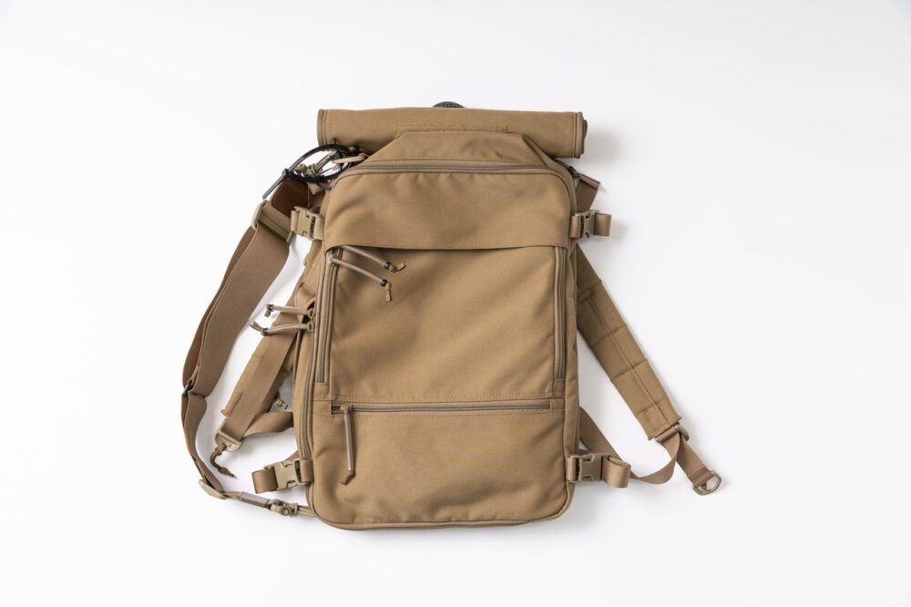 『スカイダイブカットバッグ』というモデル名を冠したバックパックは、随所に平垣さんによるカスタマイズが施されている。3ウェイバッグで、ボディにはミルスペックのコーデュラ1000。2万6400円