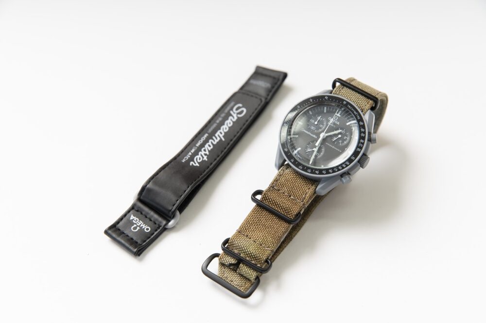 友人のためにワンオフで作ったというリメイクのウォッチストラップ。コバートのアリットというコーデュラ1000の生地を使用。19ミリサイズ。タフな素材なので他社では生産できない代物である。