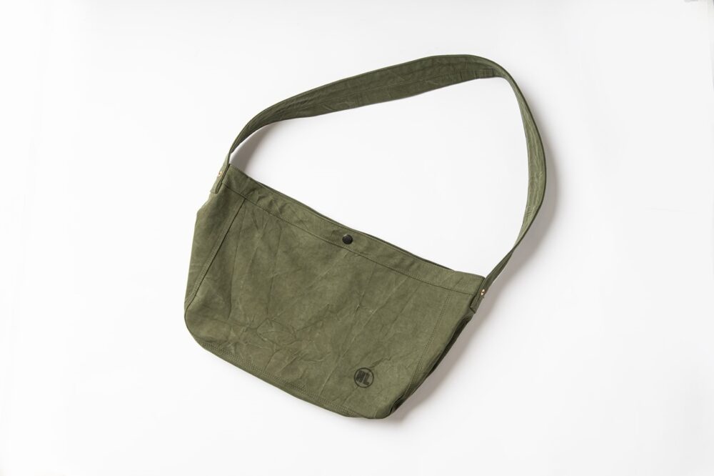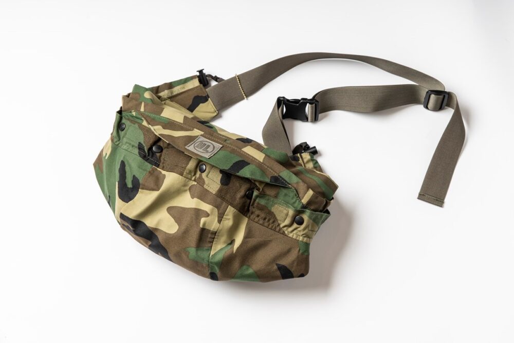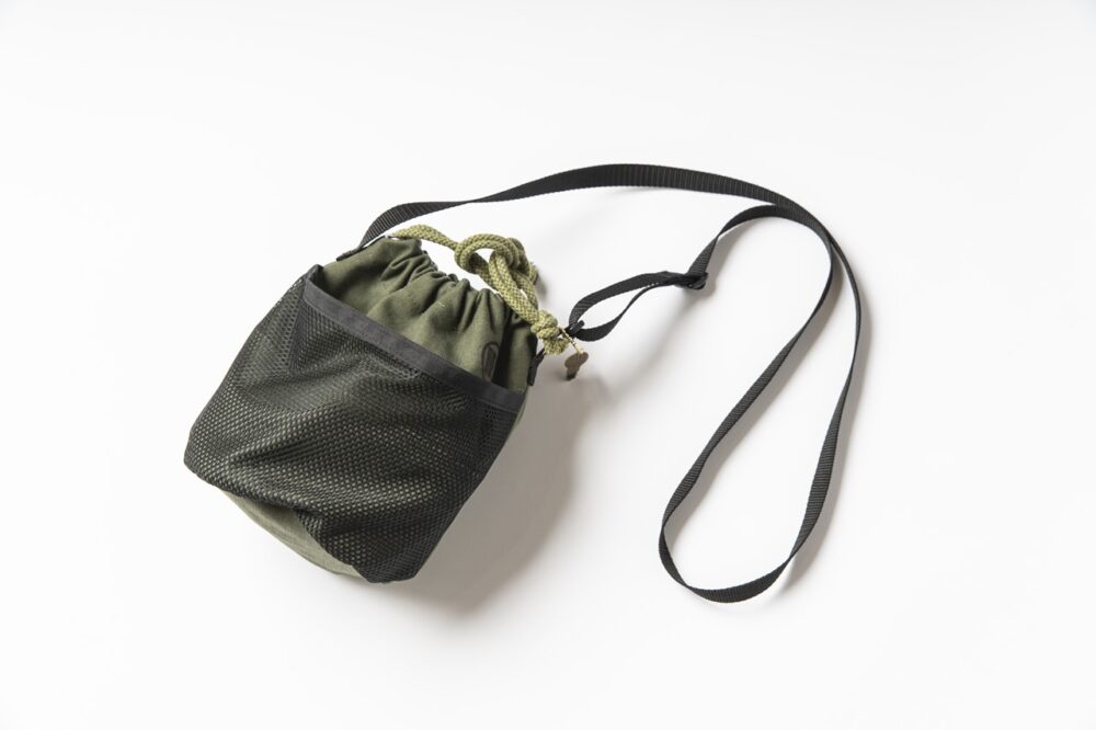 アメリカ軍のパーソナルエフェクトバッグとアウトドア的なメッシュポケットを組み合わせたHAND LIGHTのサコッシュ。生地は米軍のランドリーバッグを活用した。1万3200円
