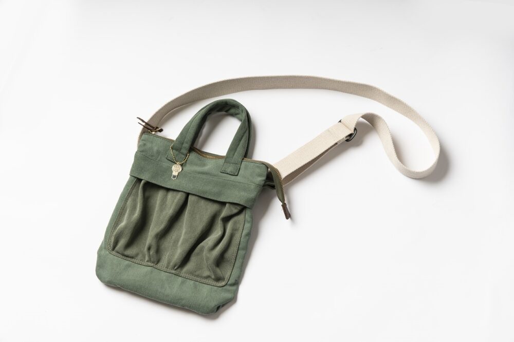 ボタンワークスと親交の深いHAND LIGHTというブランドのショルダーバッグは、オランダ軍のレインケープを解体し、バッグとしてリメイク。いい感じに褐色したオリーブカラーは、アメリカとは一味違ったトーンとなっている。1万6500円