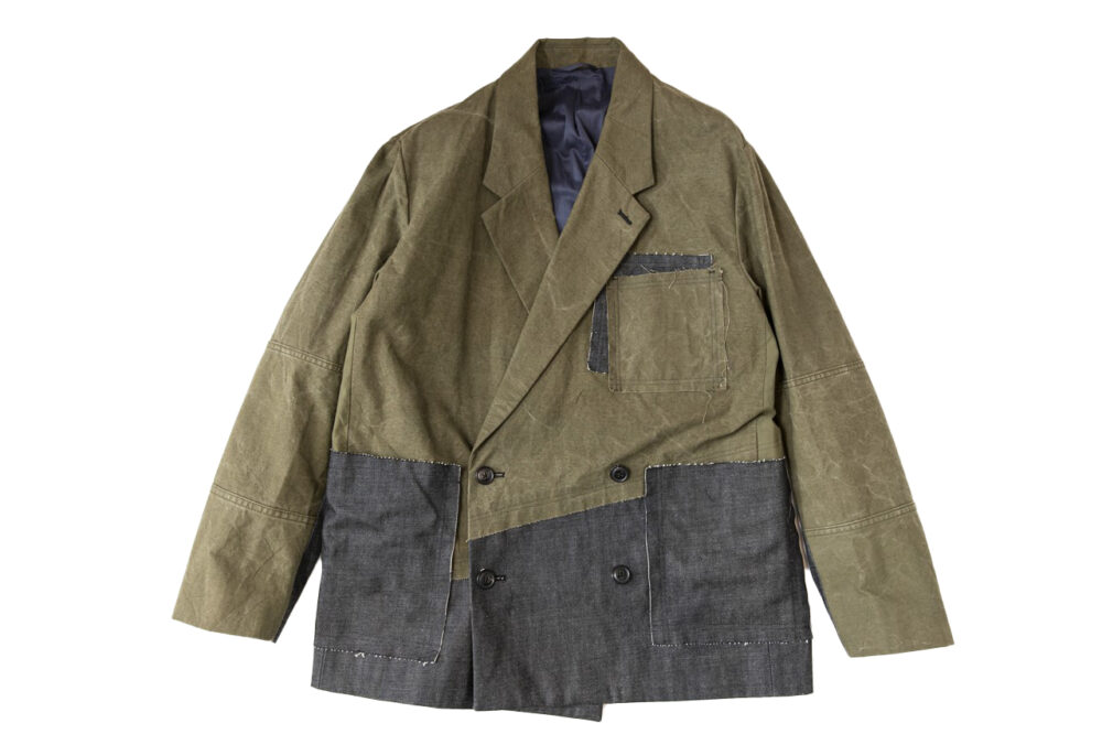 日本の『コントローラプラス』が手掛けるダブルのジャケットは、米軍のテントクロスとジャパンデニムのコンビネーション。パンツも展開。7万7000円