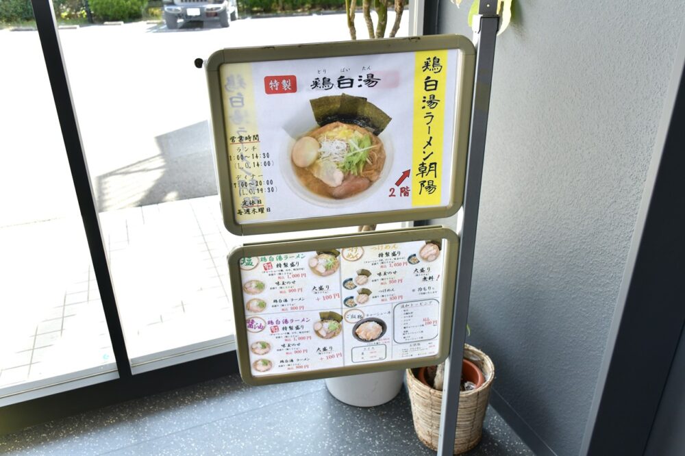お腹が空いたら2階へGO! 鶏白湯ラーメンの朝陽が出店しており、激ウマなラーメンで腹ごしらえができる。鶏白湯のベースは塩と醤油から選ぶことができる。木曜定休。