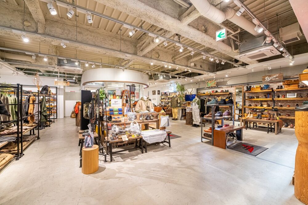 そんな店名のルーツはアメリカ・オレゴン州のポートランドにあり、西部開拓時代に新たな土地を求め切り開かれていった現地の歴史を指しての愛称を配している。そのためショップはオレゴン州の雰囲気とアメリカの文化を落とし込んだリアルな空間になっており、リクラフティングの工房や古い機械、作業する職人を目の前に他フロアとは全くの別世界を体感できる、スペシャリティなショップ仕上がっている。もちろん品揃えもアメリカンブランドを中心としたブーツの豊富なラインナップはもちろんのこと、流行や新旧を問わず独自の目線でセレクトした良質なウェアや小物なども充実している。