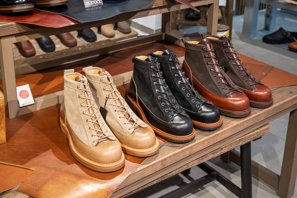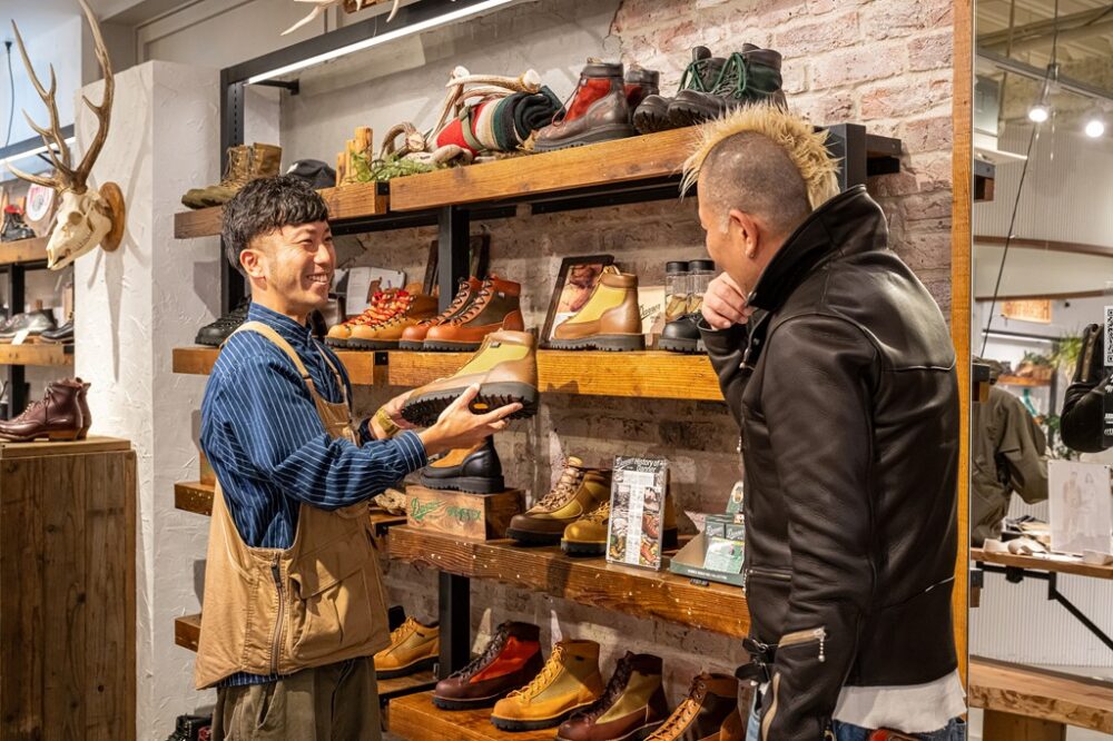 そこで今回は、モヒカン小川が時差ボケも吹っ飛ぶほどの名だたるブーツがゲットできる総本山に足を運び、独自の視点で選んだブラシやオイルなどのメンテグッズ、プチカスタムに最適な小物グッズ、これから季節にアウトドアでも活躍する確かな機能を持ったアパレル類の3トピックを紹介。リクラフティングの要素も織り交ぜつつ、ショップで人気の3銘柄のおすすめブーツも選んでいるのでチェックしていこう。