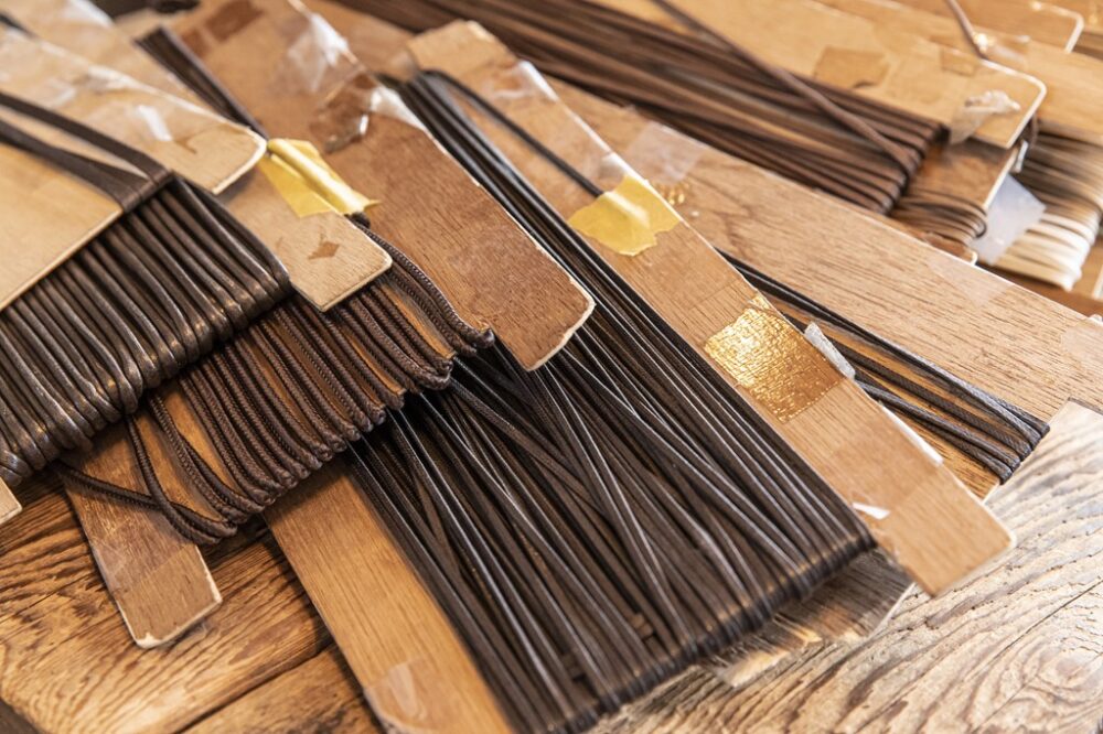 「シューレース関連のカスタムで一番多いのが、踏んづけてしまったことで、先端のプラスティックパーツが割れてしまい、交換したいというものです。そのためブラスでは、プラスティック製ではなく、真鍮やニッケルの金属パーツを使っています。また長さや細さも調整できますし、様々なカラーバリエーションを用意しています。