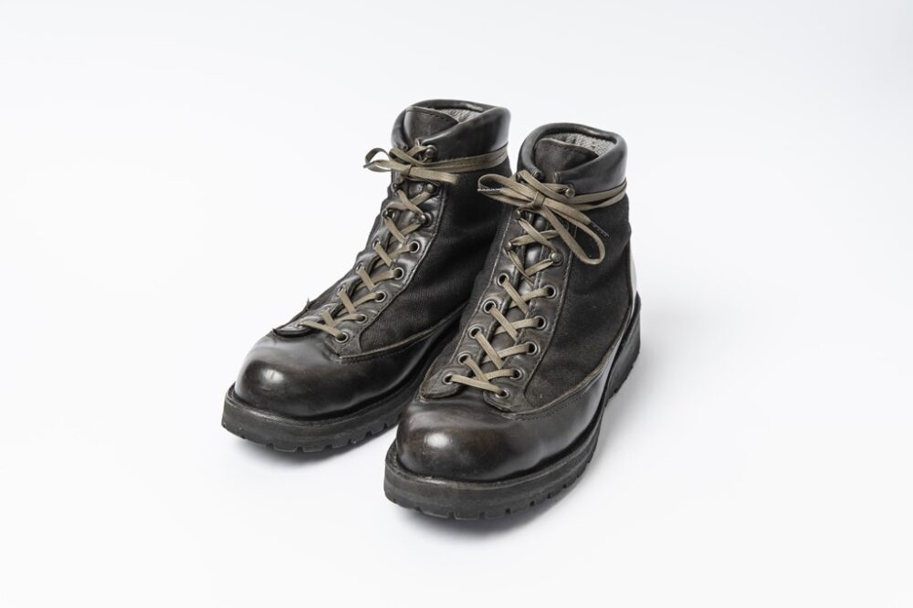 ダナーライトをカスタム。もともとはブラックの丸紐でボロボロだった物を、先端に金属パーツを用いたカーキの平紐に交換した。精悍な表情となり、アウトドアよりもミリタリー寄りの雰囲気になっている。1650円