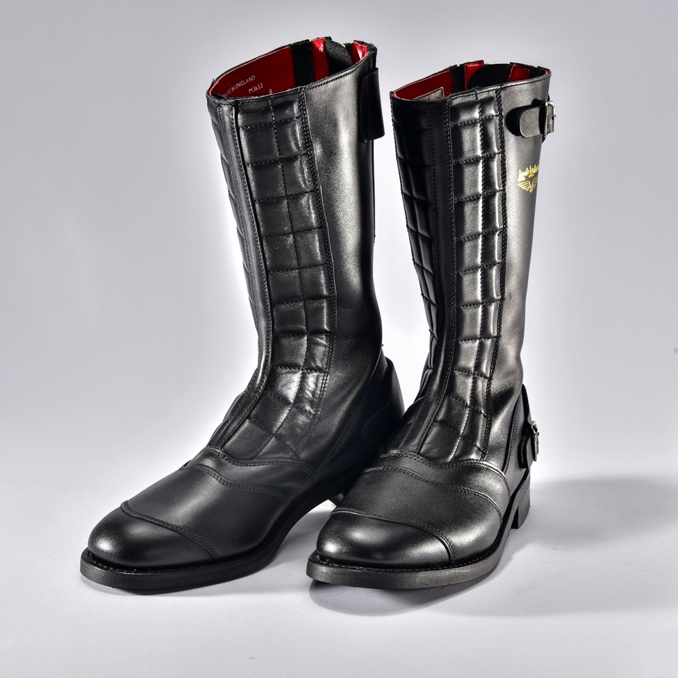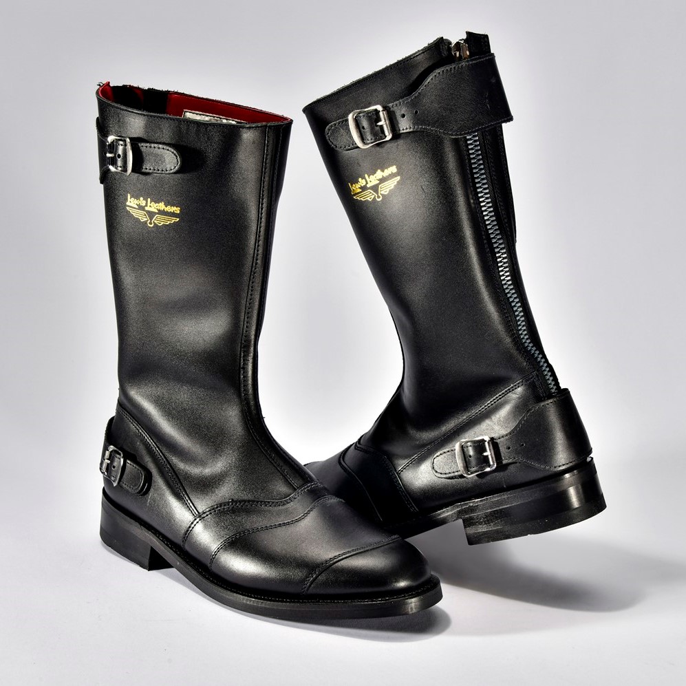 ショートスタイルジッパー、インナージップガード、踵の滑りを防ぐアンクルストラップなど、デザインと機能を両立した真のレーシングブーツ。美しい佇まいもポイント。8万8000円(ルイスレザージャパン TEL03-6438-9215)