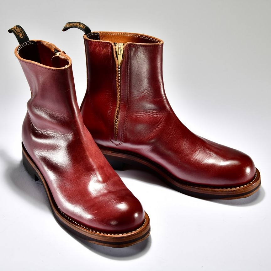 履き込むごとに表情を変える、一枚革のサイドジップブーツ。深い色味のバーガンディはまるでドレスブーツのような気品がある。8万300円(ザ・ブーツショップ TEL03-6802-8083)