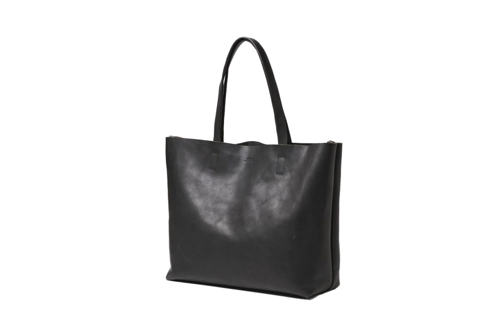 どんなシチュエーションでも活躍する普遍的なトートバッグを、栃木レザー社製のフルベジタブルタンニングレザーでデザイン。国内最高峰との呼び声も高い、名門タンナーの実力が存分に味わえる逸品。(SLOW自由が丘店 TEL03-5731-3374)
