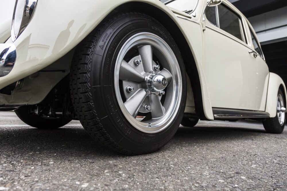 この車両は北米に輸出された’67年式のビートルをベースにフロントの車高を下げ、北米仕様はダブルバンパーとなるところを、あえてシンプルなシングルバンパーにコンバート。すっきりとした見た目にするのもキャルルックの定番ともいえる手法のひとつ。