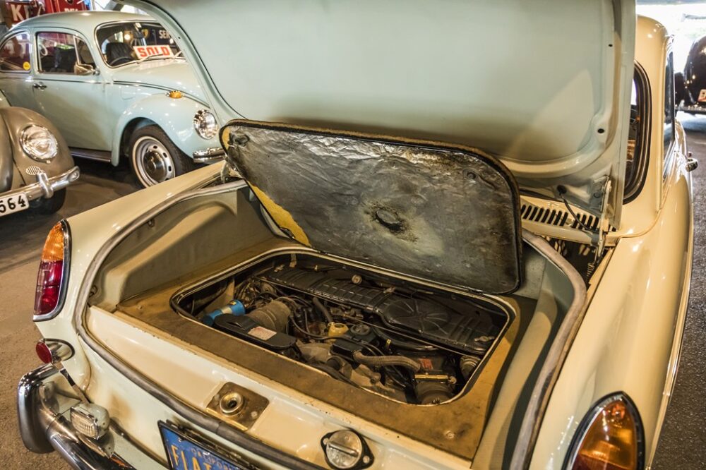 デビュー当時ビートルには1200ccのエンジンが搭載されていたため、タイプⅢは排気量の大きなエンジンを搭載した高級車だったのだ。ちなみにエンジンはビートルと同じ水平対向4気筒となるが、補器類のレイアウトを変更することで、エンジンをトランク下に配置。これによってフロントとリアにトランクを持ち、ビートルと比べて格段に荷物も収納できるようになった。