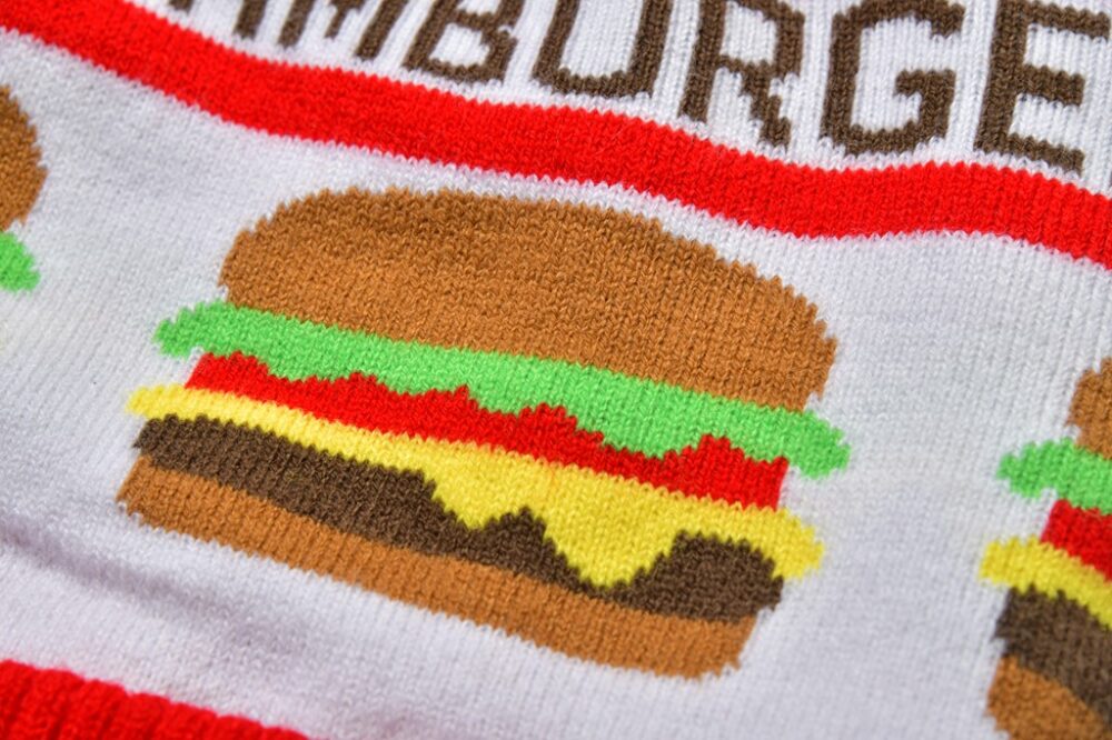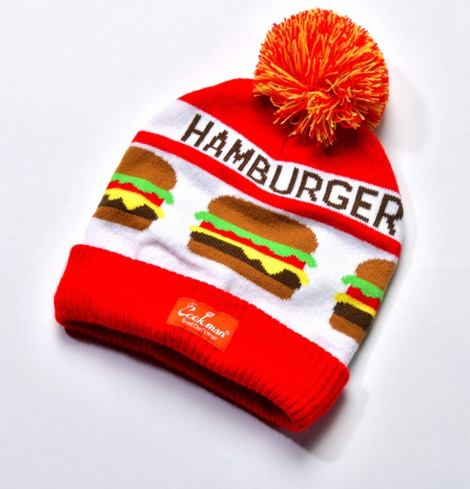 そんな大好きなボンボンニット帽コレクションに新たな仲間が加わった。先日横浜は赤レンガ倉庫前で開催した弊誌主催の『ハンバーガーフェスティバル』にて手に入れた、アメリカの『Cookman(クックマン)』というブランドのもの。付いている値札は15ドルなのに、イベント特別価格は超円安な為替を無視したかのような1900円(税込)という価格にもビックリ! この可愛いハンバーガー柄も女子ウケ間違いないので超オススメしたい!