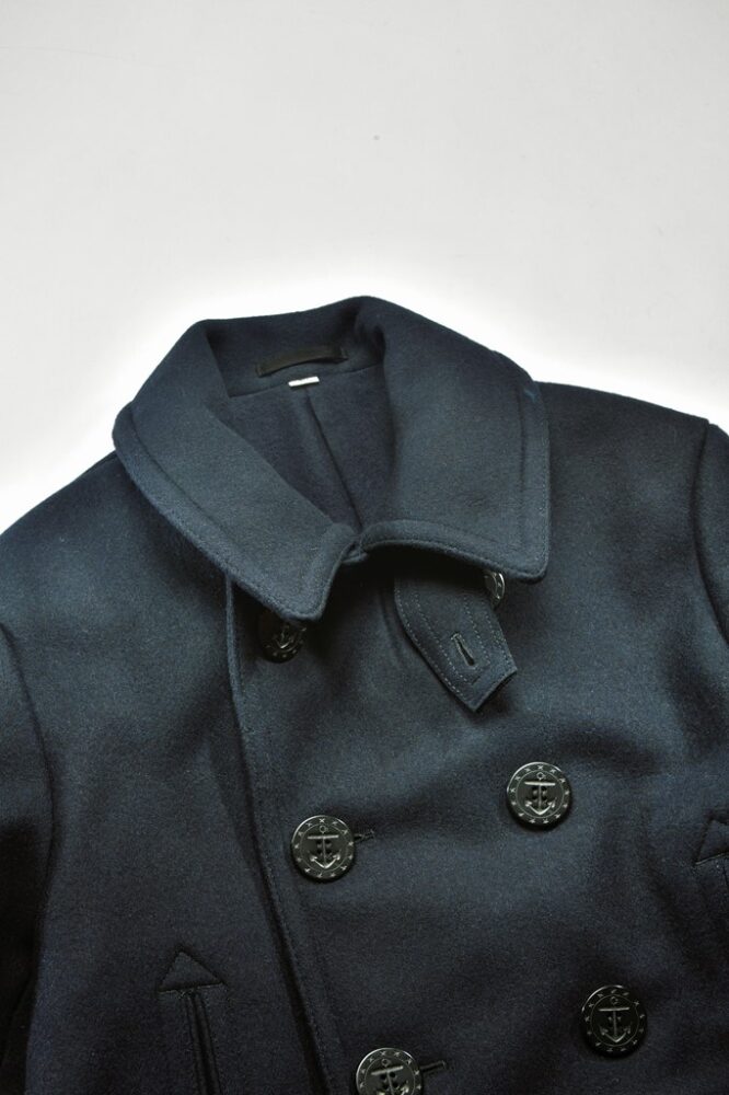 ダッフルコートは英国海軍が採用した形で、手袋を装着したままでも前が開閉できるように、木のトグルボタンを麻紐に掛けて留める。本来の色はキャメルだった。ピーコートはアメリカ海軍に採用されたコートで、フロントはダブル。大型のボタンは、これも手袋をはめたままでも開閉できるよう考えられたものだ。大きな襟を立てれば、顔の周りも温かい。また、前の合わせは、左右どちらを上にしても着られる。風向きや船の進行方向によって前の合わせを変えることができるのだ。