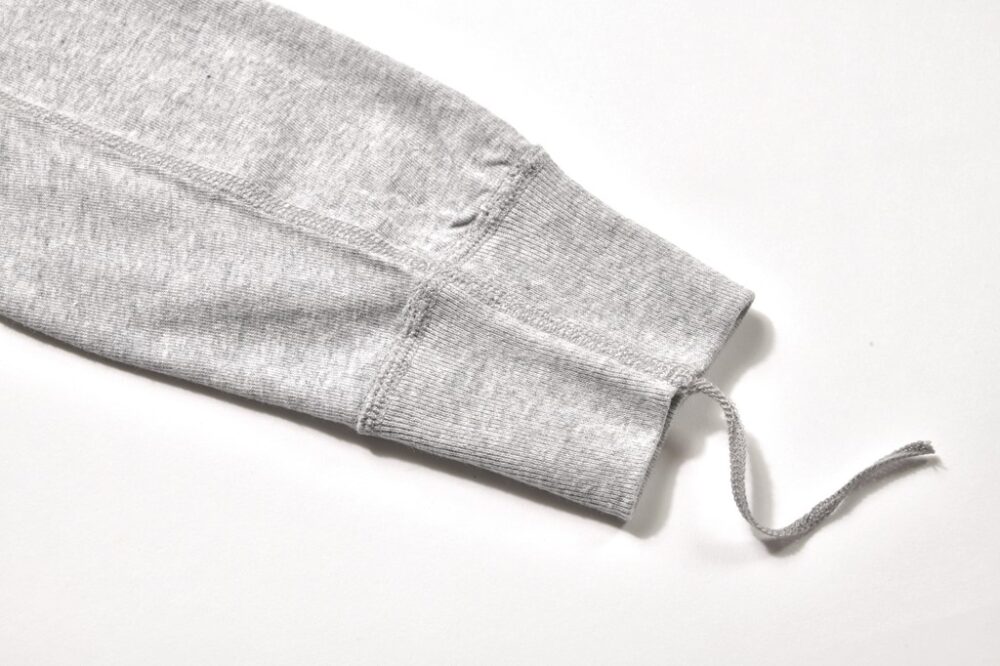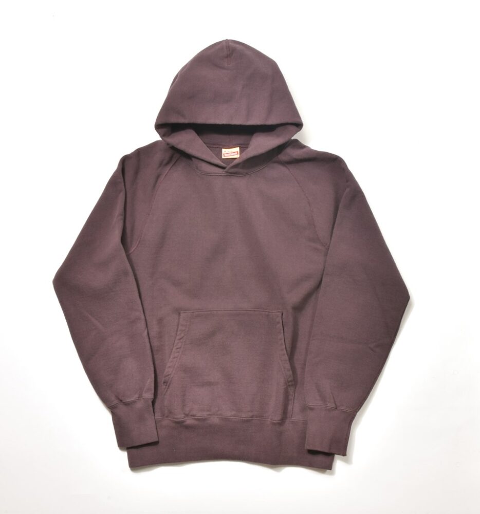 『吊り裏毛』と呼ばれる旧式の吊り編み機で編み立てた素材を使用。ふっくらとした独特の風合いと、コシのある生地、そして洗うたびに肌馴染みがよくなる特徴をもつ。『フリーダムスリーブ』と呼ばれる肩から腕への縫い付けがS字のような曲線を描く仕様や、『カンガルーポケット』と呼ばれる身頃のパッチポケットなど、着心地のよさに加え、ヴィンテージ感も楽しめる一着だ。2万790円