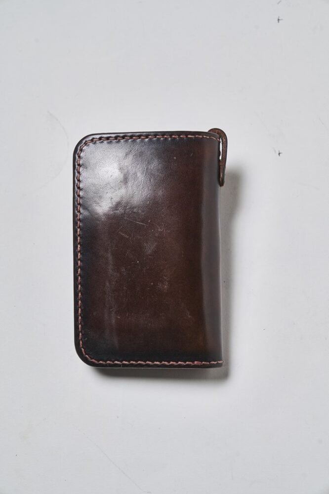 「ただ使い込む」というストイックな方法でブラックの茶芯をここまで引き出した横山さん。ため息が出るほど美しい。メンテ法は年に一度のオイルアップ。