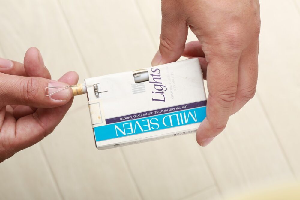 ボタンを押すとすごい勢いでミサイルが飛び出す。「タバコをどうぞ」という一連の流れで使うものゆえ、吸わない子どもには使えない。