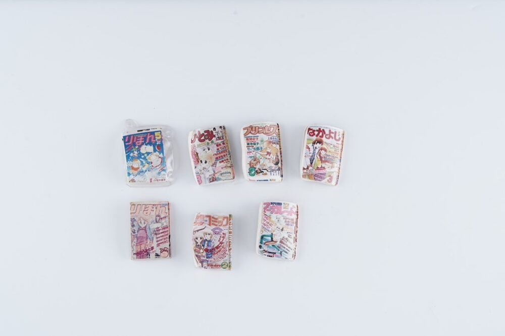 粉消しと同様、オリジナルは替え芯のオマケ。さらなる進化を遂げるのがガチャブランド。拳銃や漫画大百科はもはや辞書ではない。