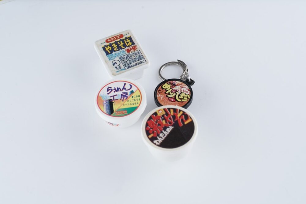 フタを開けると麺型の消しゴムが入っていた。コインを3枚程入れられるものも。「らうめん工房」はコスモスオリジナル商品。