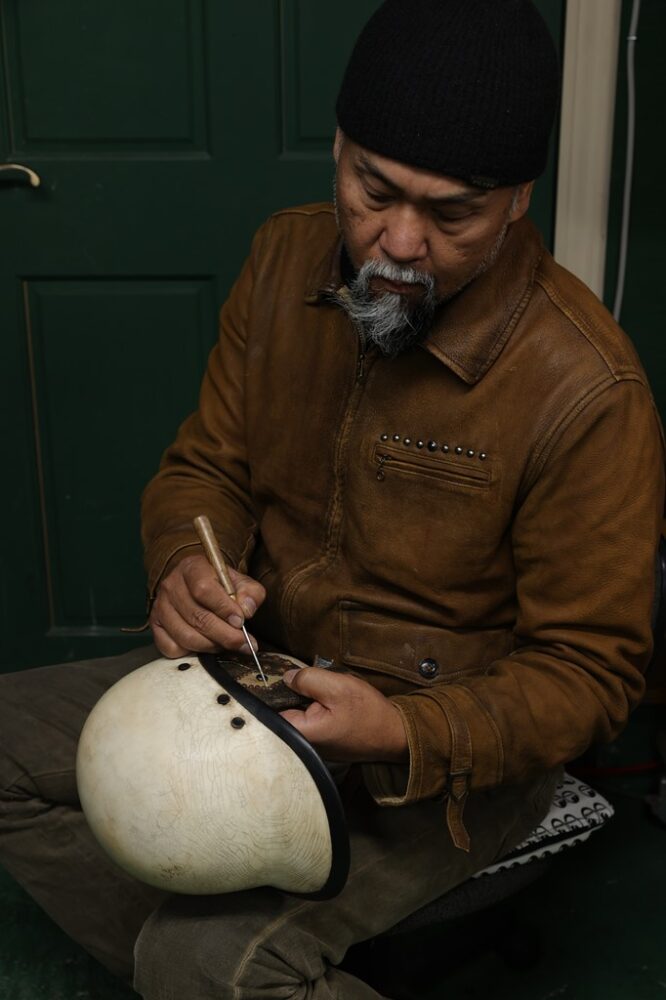 「オンリーワン」シリーズは「世界に一つとして同じものはない、Only Oneのヘルメット」がコンセプト。さまざまなアーティストによる1個限定のプロダクト。そのひとつが代表の高橋さん自らが手がける「Hiroパティーナアートスタジオ」のヘルメットだ。写真のヘルメットは高橋さんの私物。