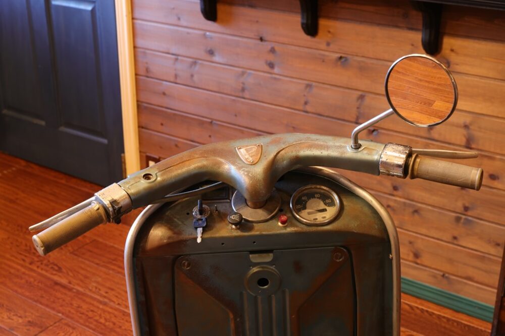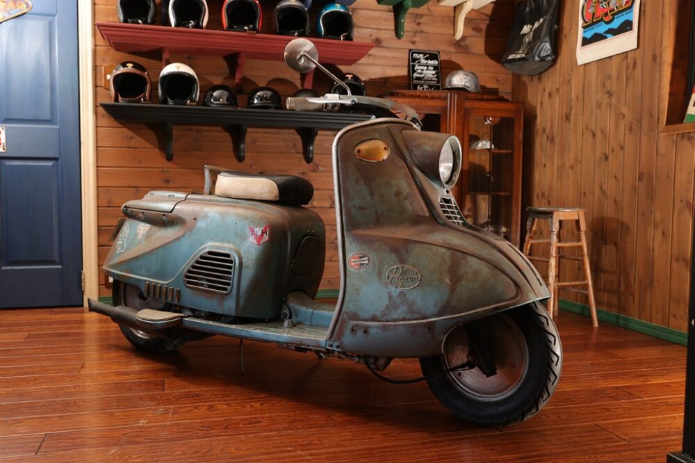 シルバーピジョンは三菱重工業がかつて製造販売していたスクーターシリーズで、鉄スクーターファンに人気のあるブランド。その中でもポップなボディデザインのピーターは、特に人気が高いモデルだ。その1961年式ピーターC111をベースに、高橋さんが「アパッチファブリケーション」に製作を依頼した一台。