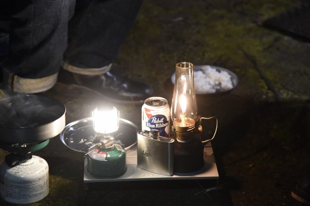 夜のキャンプシーンにおいてランタンは必要不可欠なアイテム。大抵、真っ暗な森や川など自然の中にいるため、街灯が設置されていることはほぼ見込めない。そうなればランタンの光のみでキャンプサイトを動くことがほとんど。焚き火台を囲んだ席を外し、テントに行く時など、特にペグで固定されたテントのロープなどで足を引っ掛けて大怪我をしてしまうなんてことになったら、せっかくの楽しいキャンプも台無しになってしまうため注意したい。