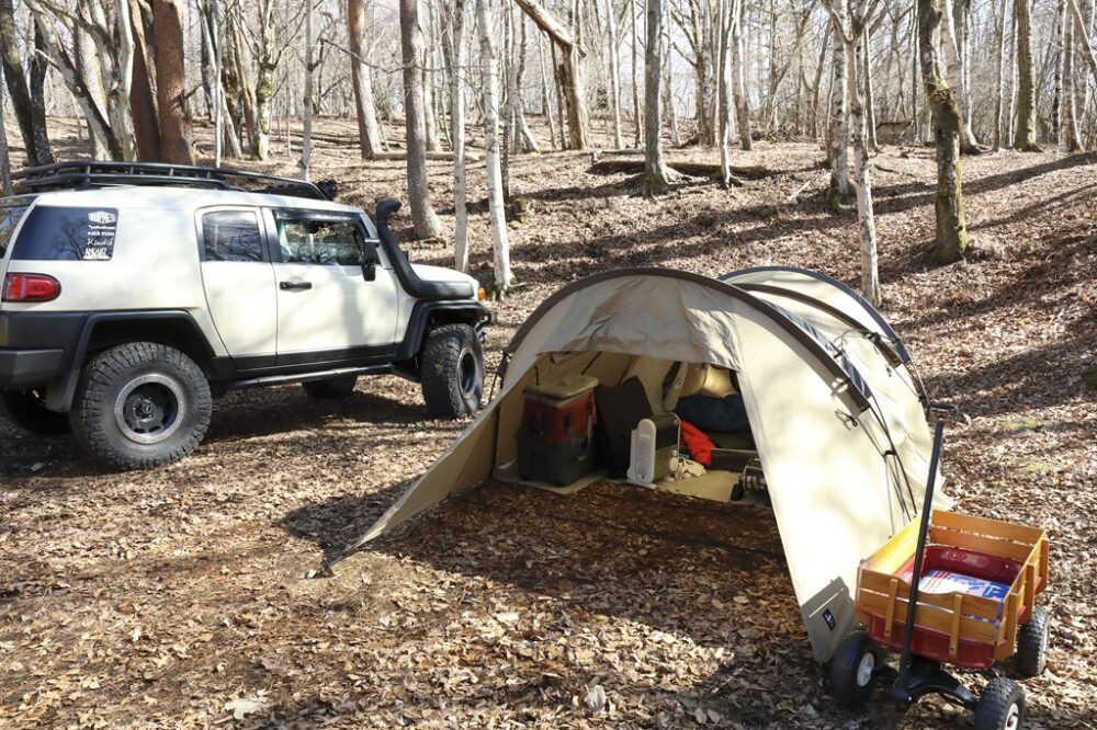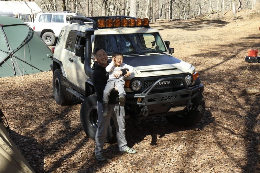 「単純に北米仕様のFJクルーザーがカッコいいなという動機から始まり、FJクルーザーを購入した2010年に開催されたFJミーティングで山崎さんとの出逢いがきっかけでキャンプにのめり込みました。本格的なオフローダーとしてのスピリッツやタフさ、見た目のよさはもちろん、ファミリーキャンプも存分に楽しめます」