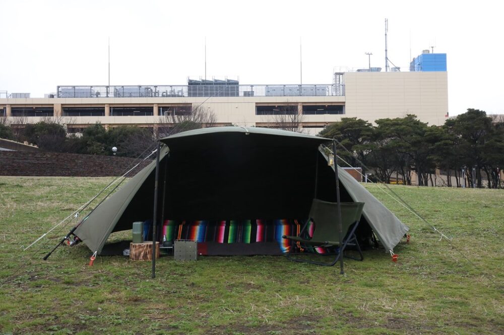 「とにかく重いんですが、見た目のかっこよさやパップテントが生まれた歴史や背景を掘り下げるほどに魅力を感じるようになってしまいました。入り口は米軍でしたが、その後、ヨーロッパ軍のテントにも興味をもつようになり、いくつか所有しています」