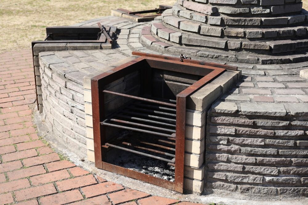 備え付けの野外炉。すぐに火起こしできるので便利。