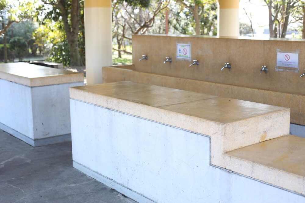 食器洗いや野菜洗いができる水道も完備。複数の使い方が可能だ。料理の下ごしらえができる場所も設けられている。