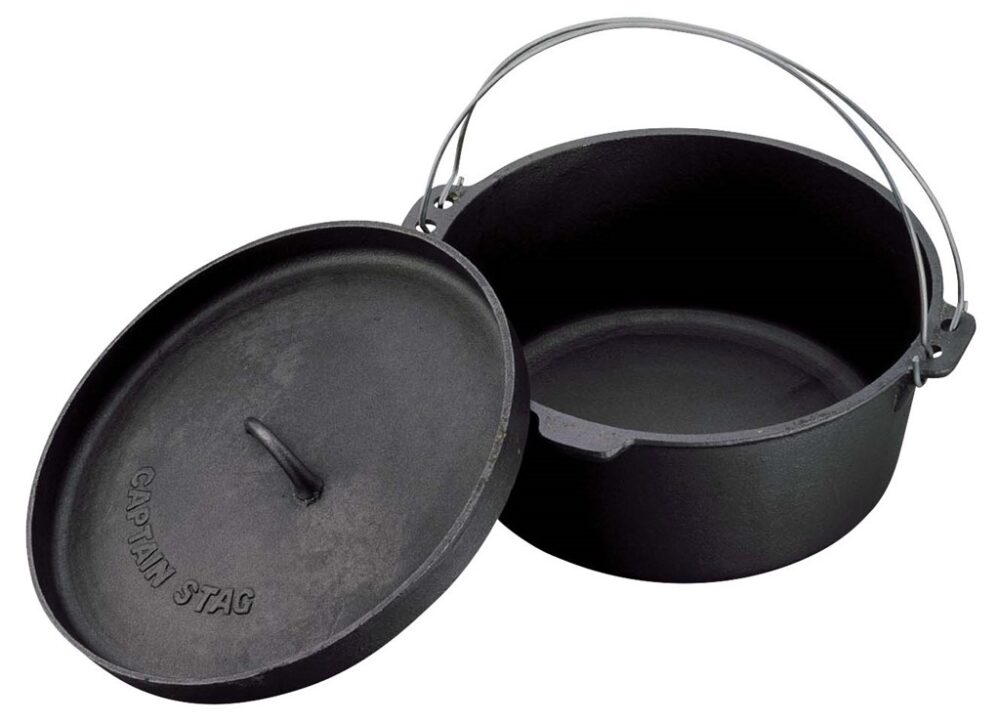 料理をするのに必要なダッチオーブンなどの 器具類は、アウトドア専用の物が使いやすい。