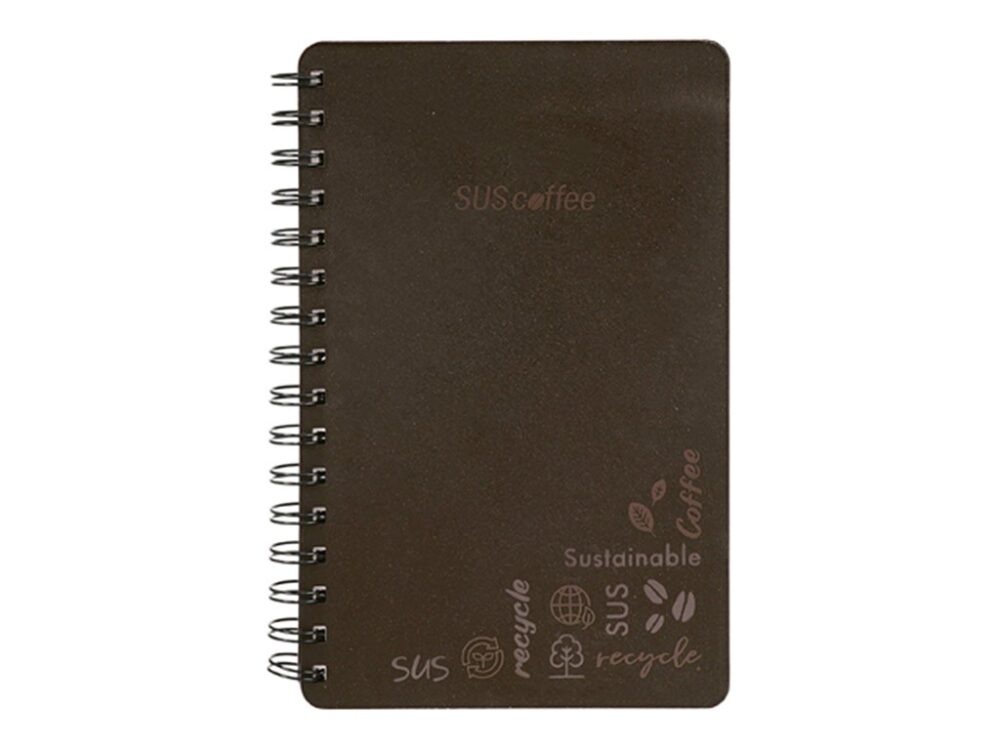 カバーにコーヒーの粉を採用したノート。持ったままでも書きやすい丈夫な仕上がりだ。中は再生紙を利用(1760円)