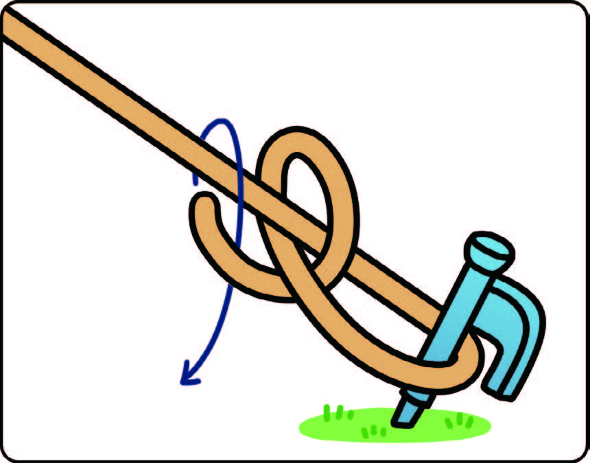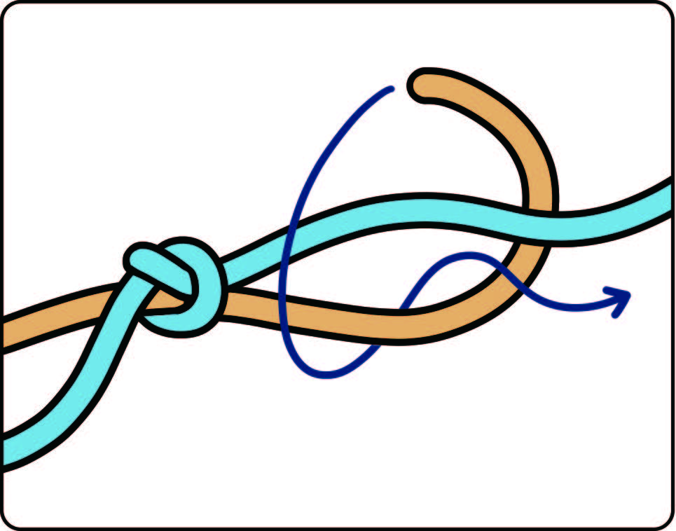 1.2本のロープのうち一方を、もう一方のロープに巻きつける。
