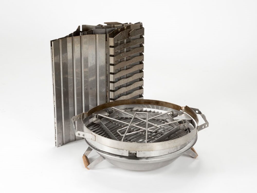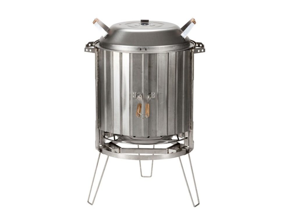 1910年に創業したドイツの灯油ランタンブランドから発売されたクッキングツール。1台で4通りの調理法が可能なクッキングツール。網焼きや焚き火のほか、パーコレーターやダッチオープンをスポッと中に入れることもできる。中華鍋も使用可能だ。使用サイズ/φ420× 280mm(収納時φ420×150mm) 重量/6.1kg 4万2900円(スター商事 TEL03-3805-2651)