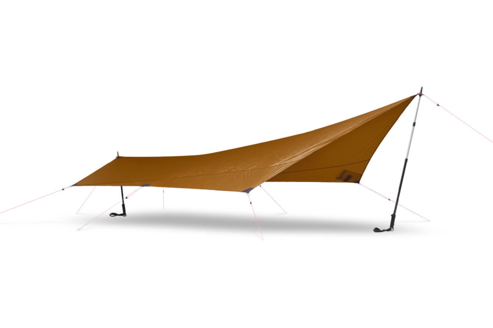 形状は五角形となり、どのような天候下でも居住空間と荷物を置けるスペースを確保。ソロ向けの商品だが、ラインナップされる「タープ 20」なら4人でも十分の広さをもつ。サイズ:W215cm×H315cm 素材:Kerlon1000 重量:320g 3万800円